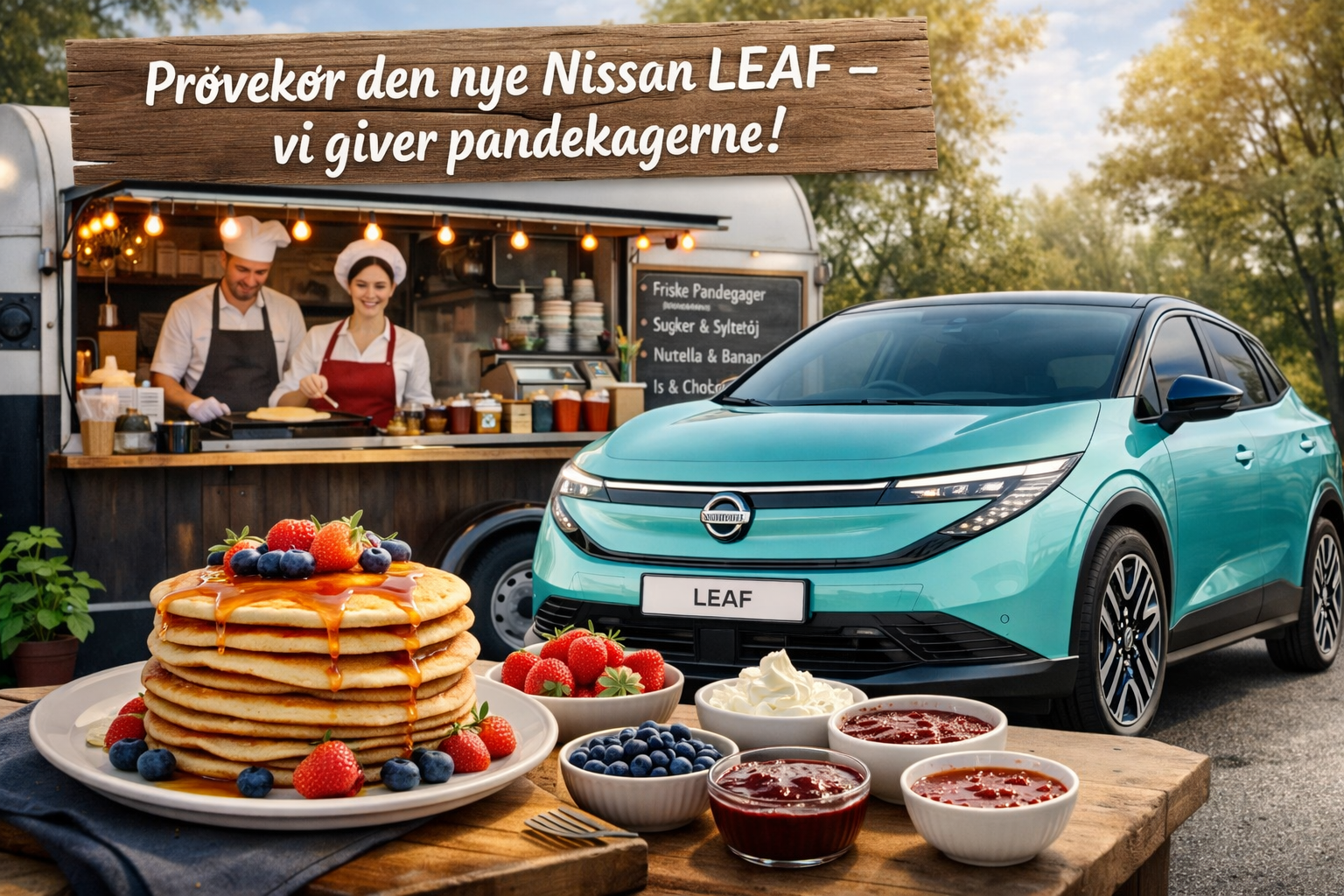Søndag d. 1/2-2026 kl. 11.00-16.00 kan man opleve den NYE Nissan LEAF i vores showroom i Odense. Der vil blandt andet være en pandekagevogn, som kommer og serverer lækre, lune og frisklavede pandekager. Så kig ind og oplev fremtidens el-bil!