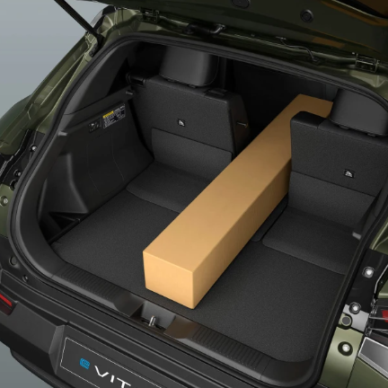 Inde i e-Vitara mødes du af en moderne, rummelig kabine med: