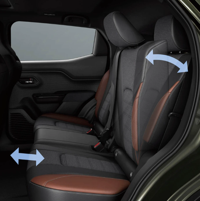 Ryglænet kan desuden foldes i tre dele (40-20-40), hvilket giver fleksibelt bagagerum og gør det muligt at transportere lange genstande som ski, samtidig med at to passagerer kan sidde bagi.